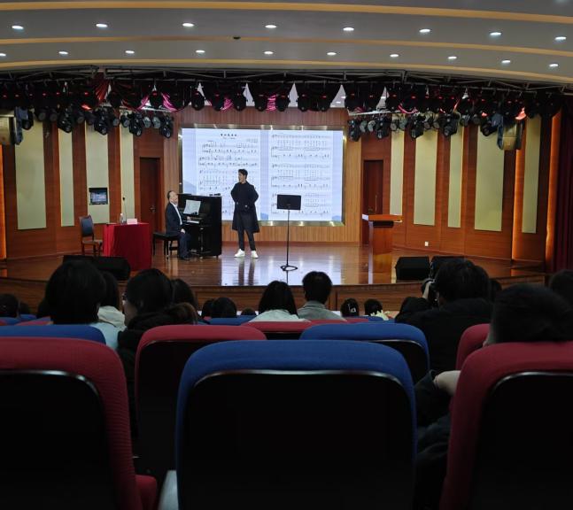 2025年12月13日15:30,由抱石艺术学院主办的“天工讲坛”系列活动——“声乐之道:技术、审美与教育的实践探索”讲座在文科楼四楼演艺厅成功举行,主讲人洪光辉教授以其38年的专业积淀,通过理论解析与现场演绎,为同学们带来一场精彩纷呈的声乐讲座。